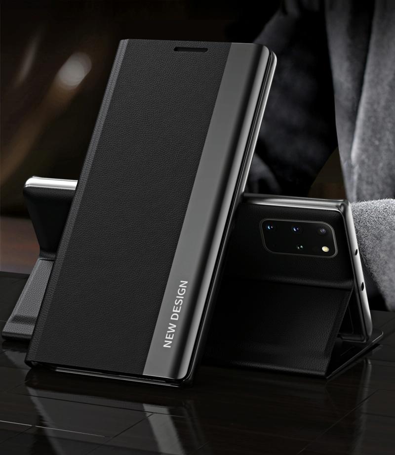 For Samsung Galaxy S20 FE Side Electroplated Magnetic Ultra-Thin Horizontal Flip Leather Case with Holder(Black)
