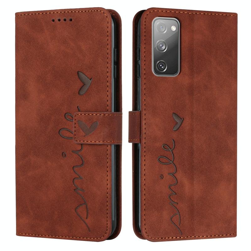 For Samsung Galaxy S20 FE Skin Feel Heart Pattern Leather Phone Case(Brown)