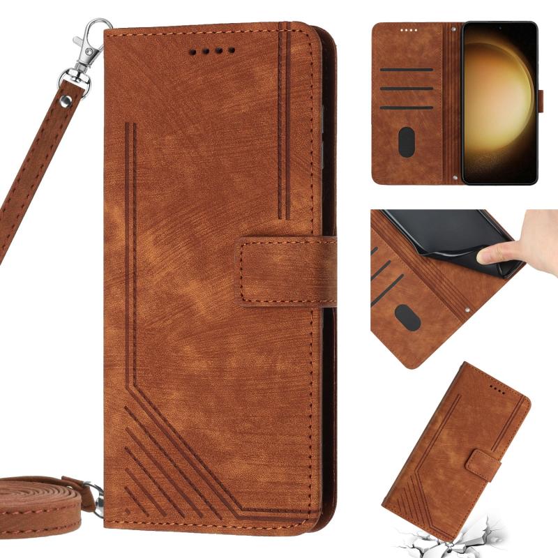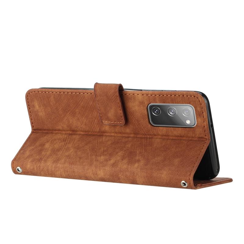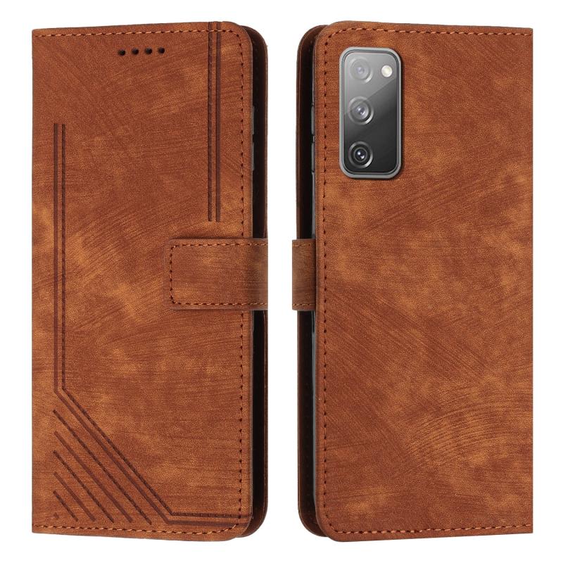 For Samsung Galaxy S20 FE Skin Feel Stripe Pattern Leather Phone Case with Lanyard(Brown)