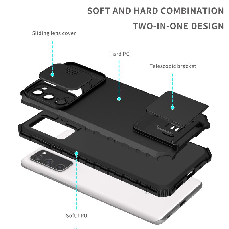 For Samsung Galaxy S20 FE Stereoscopic Holder Sliding Camshield Phone Case(Black)