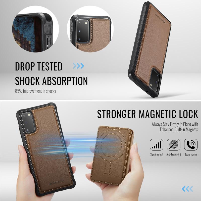 For Samsung Galaxy S20 JEEHOOD J10 Flip Card Bag MagSafe Split RFID Leather Phone Case(Brown) (JEEHOOD)