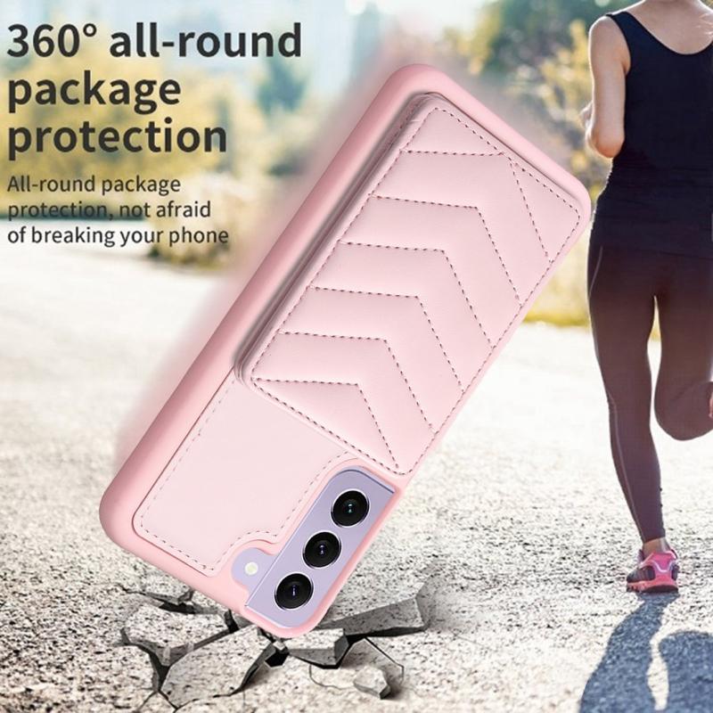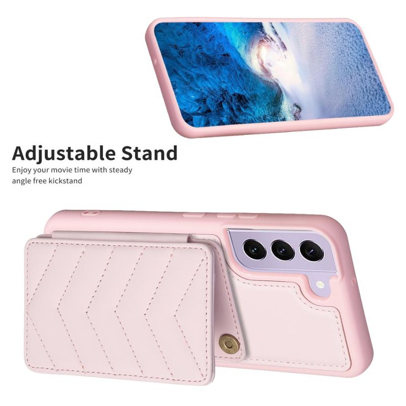 For Samsung Galaxy S21 5G BF26 Wave Pattern Card Bag Holder Phone Case(Pink)