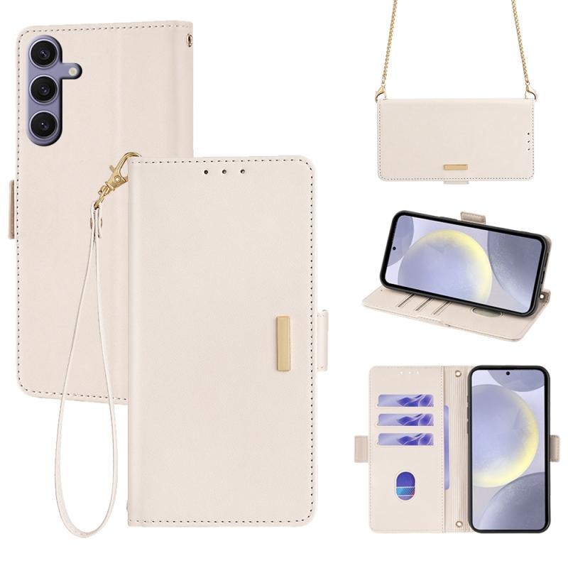For Samsung Galaxy S21+ 5G Crossbody Chain Leather Phone Case(White)