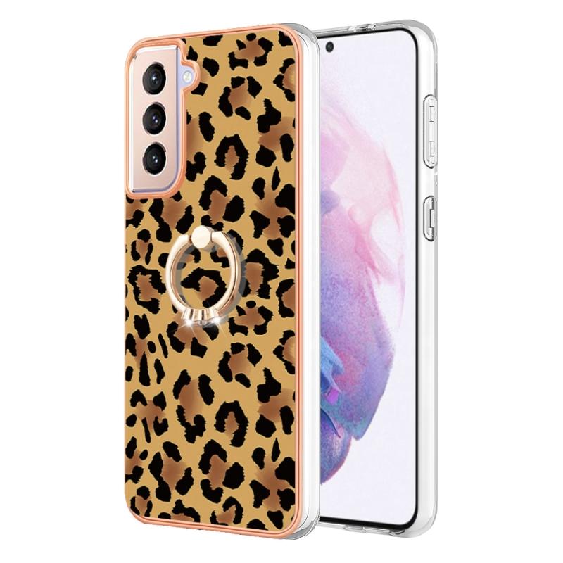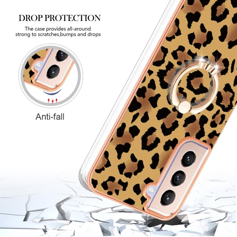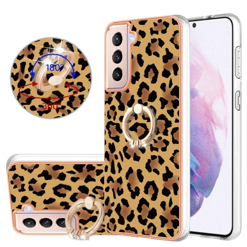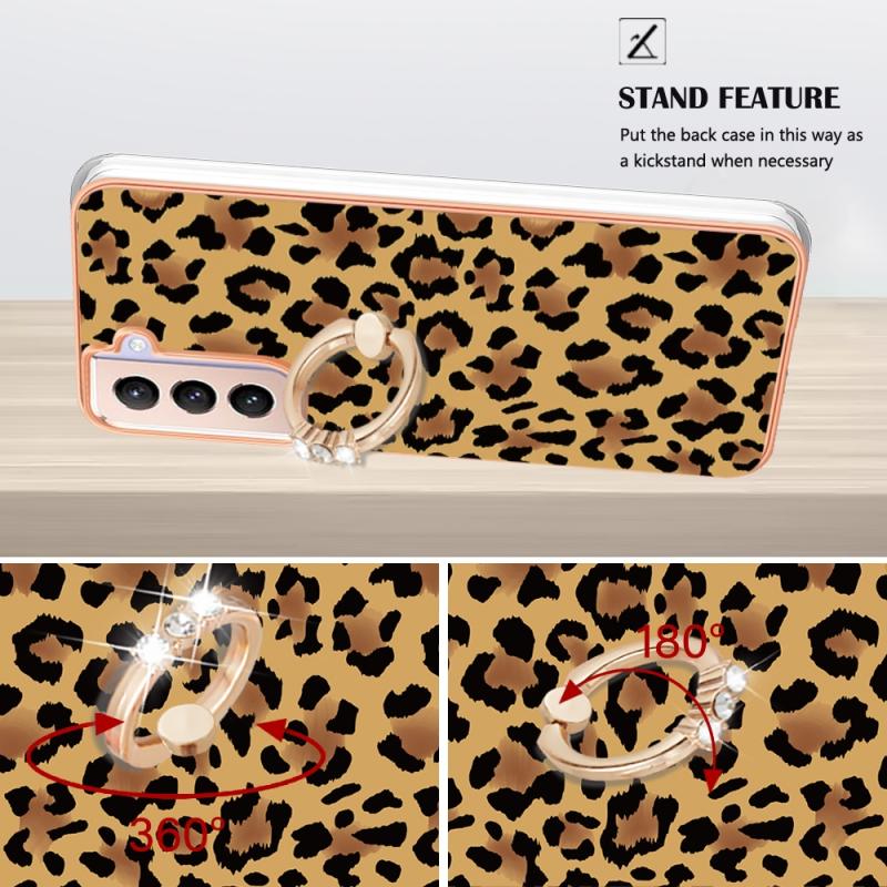 For Samsung Galaxy S21+ 5G Electroplating Dual-side IMD Phone Case with Ring Holder(Leopard Print)