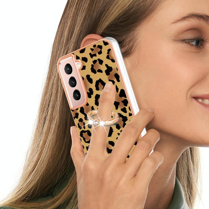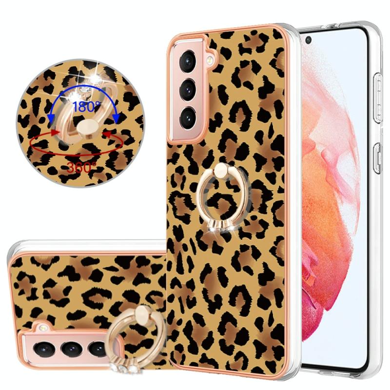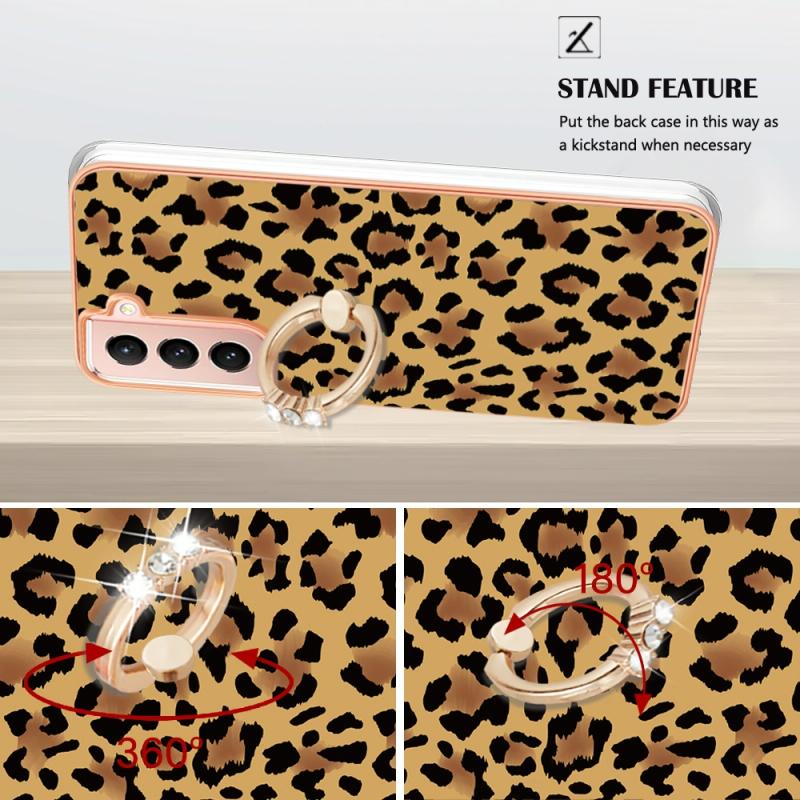 For Samsung Galaxy S21 5G Electroplating Dual-side IMD Phone Case with Ring Holder(Leopard Print)