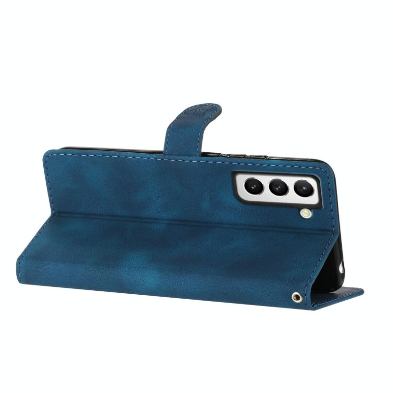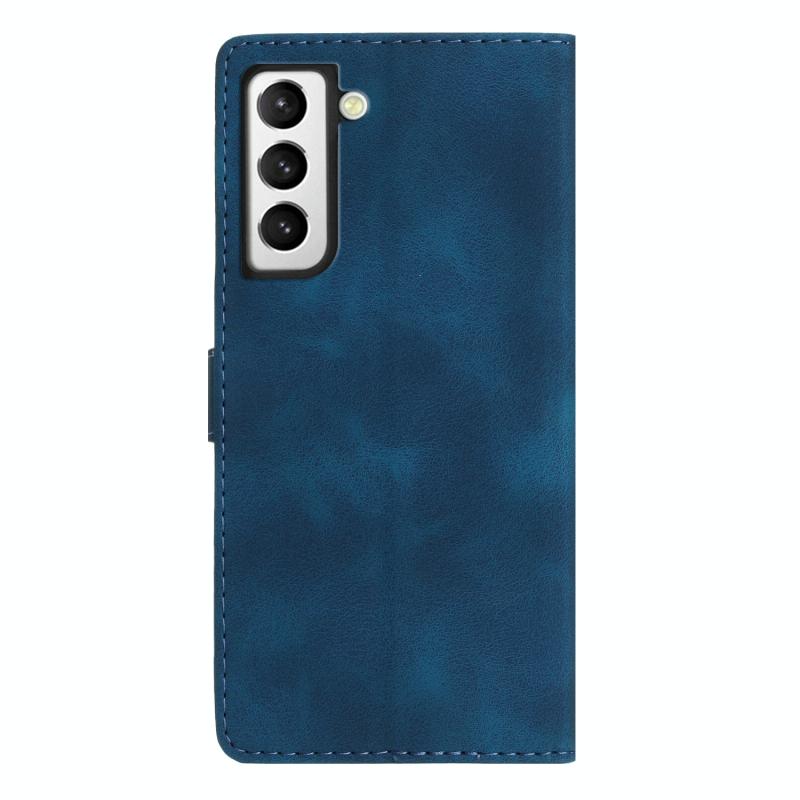 For Samsung Galaxy S21+ 5G Flower Butterfly Embossing Pattern Leather Phone Case(Blue)