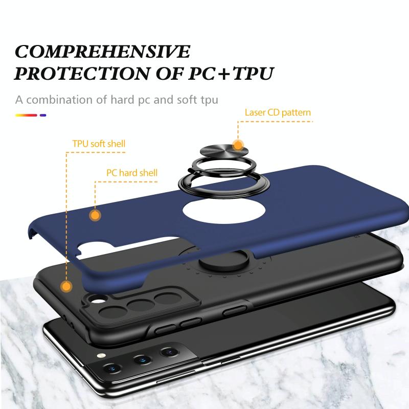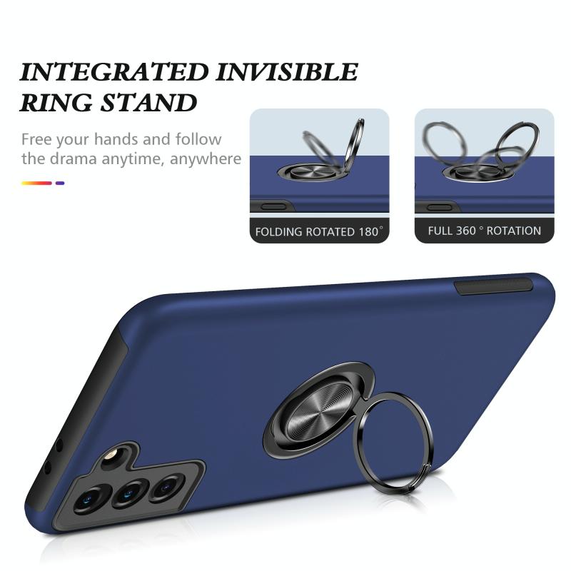 For Samsung Galaxy S21 5G PC + TPU Shockproof Magnetic Protective Case with Invisible Ring Holder(Blue)