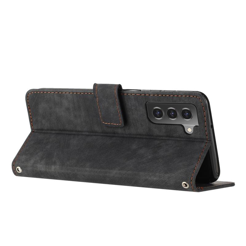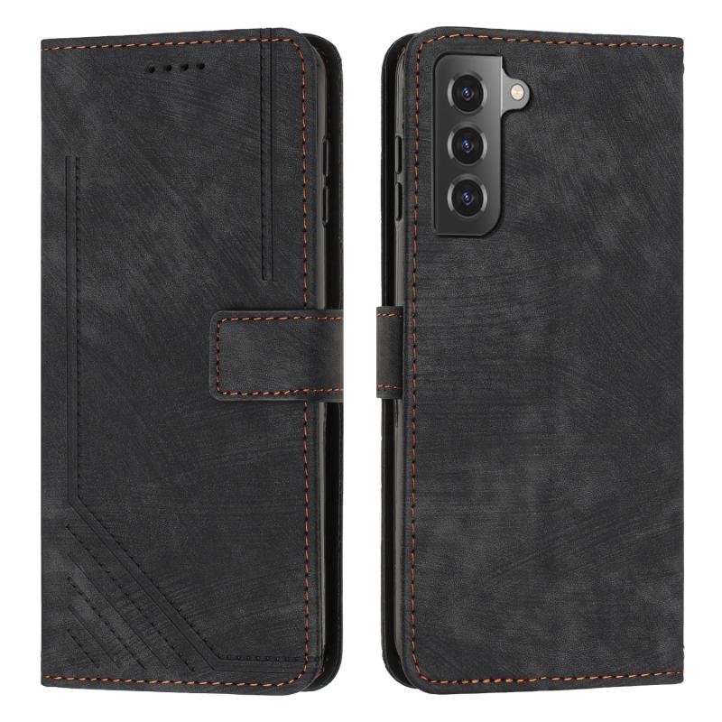 For Samsung Galaxy S21+ 5G Skin Feel Stripe Pattern Leather Phone Case with Lanyard(Black)