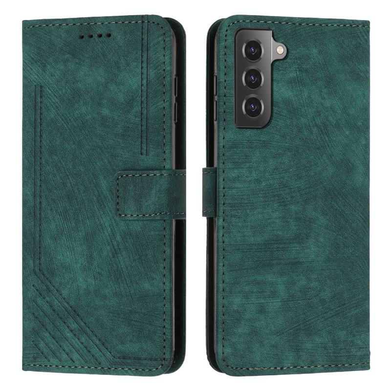 For Samsung Galaxy S21+ 5G Skin Feel Stripe Pattern Leather Phone Case with Lanyard(Green)