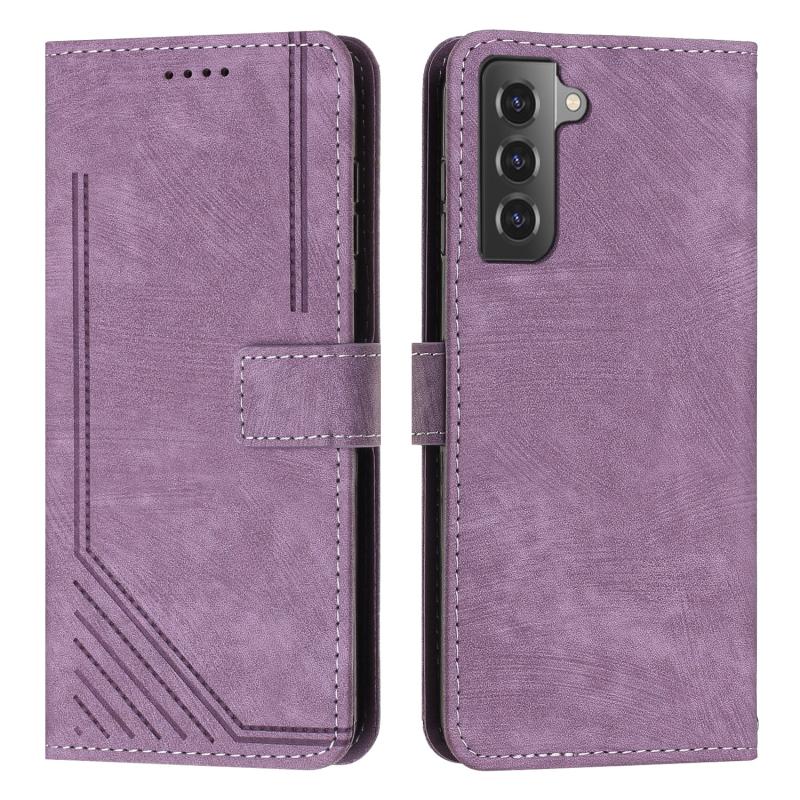 For Samsung Galaxy S21+ 5G Skin Feel Stripe Pattern Leather Phone Case with Lanyard(Purple)