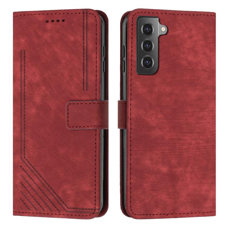 For Samsung Galaxy S21+ 5G Skin Feel Stripe Pattern Leather Phone Case with Lanyard(Red)