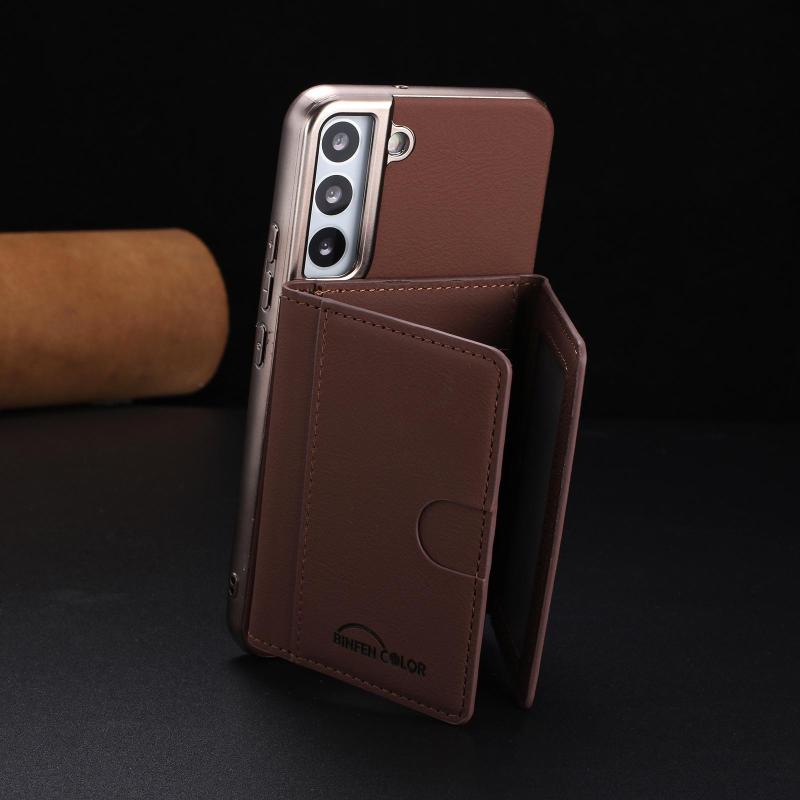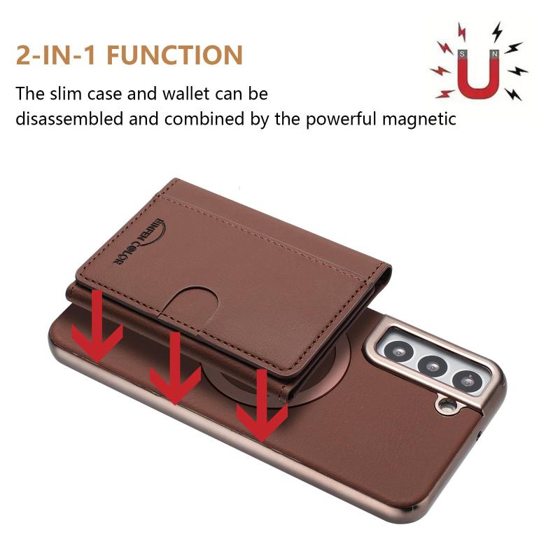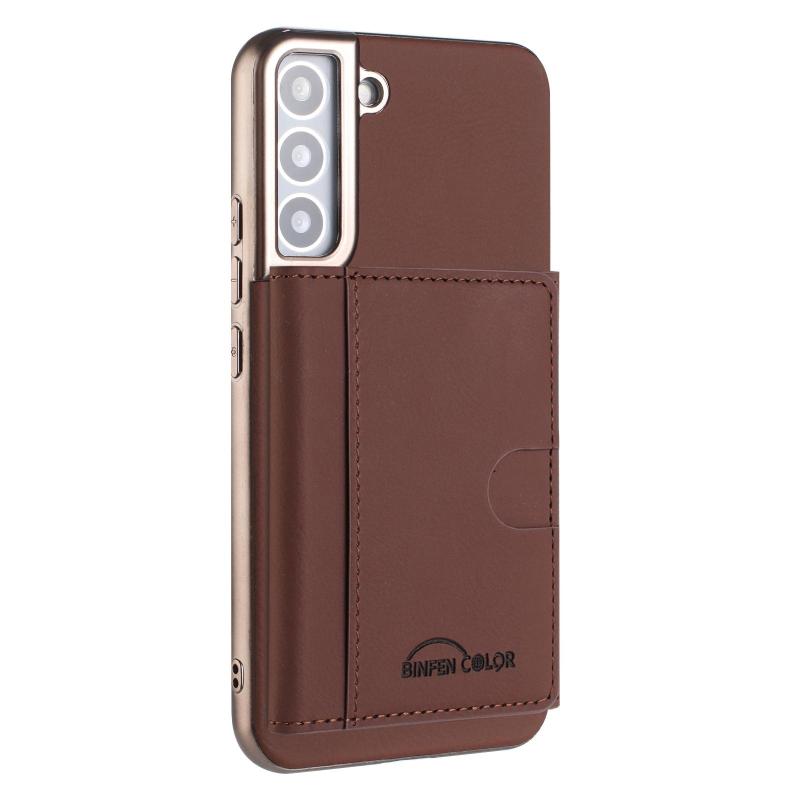 For Samsung Galaxy S21+ 5G Solid Color Horizontal Magnetic Card Bag RFID MagSafe Phone Case(Brown)