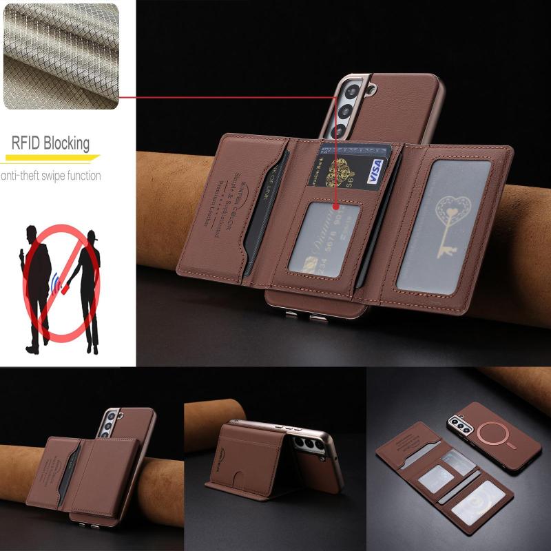 2. Magnetic Tri-Fold Wallet Design: Features a horizontal fold with a strong magnetic closure for easy access and secure storage.