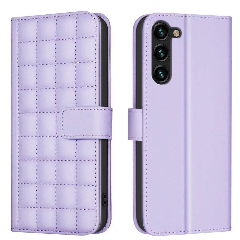 For Samsung Galaxy S21 5G Square Texture Leather Phone Case(Purple)