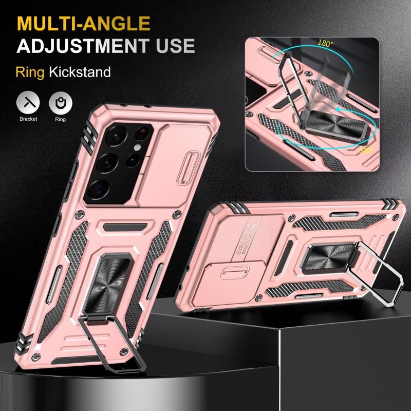For Samsung Galaxy S21 Ultra 5G Armor PC + TPU Camera Shield Phone Case(Rose Gold)