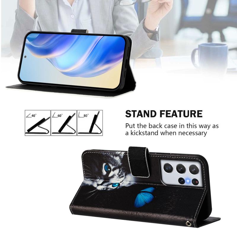 For Samsung Galaxy S21 Ultra 5G Art Colored Drawing Pattern Leather Phone Case(Butterfly cat)