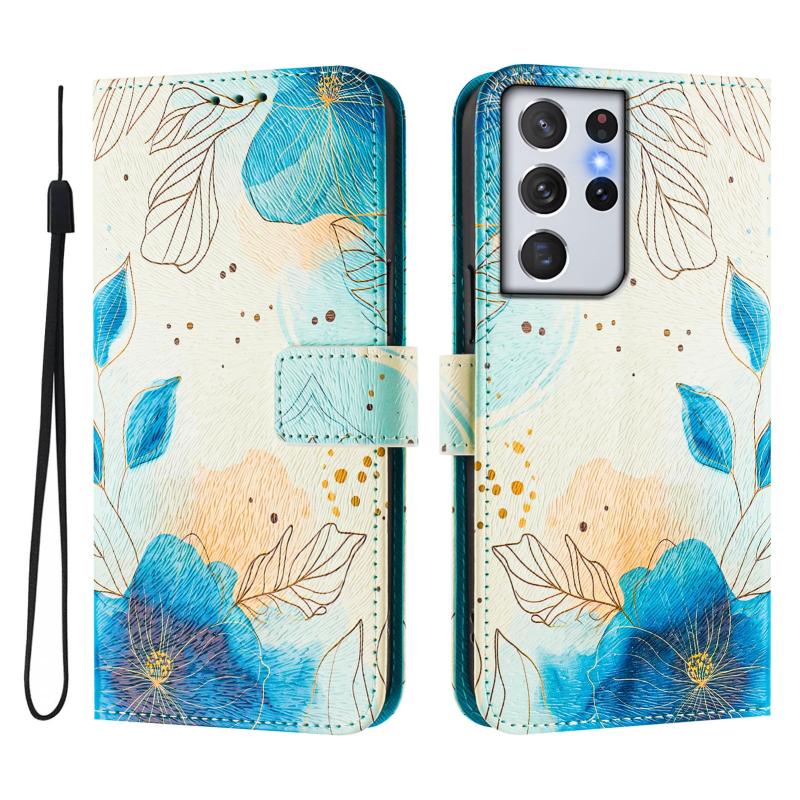 For Samsung Galaxy S21 Ultra 5G Art Colored Drawing Pattern Leather Phone Case(Flowering flowers)