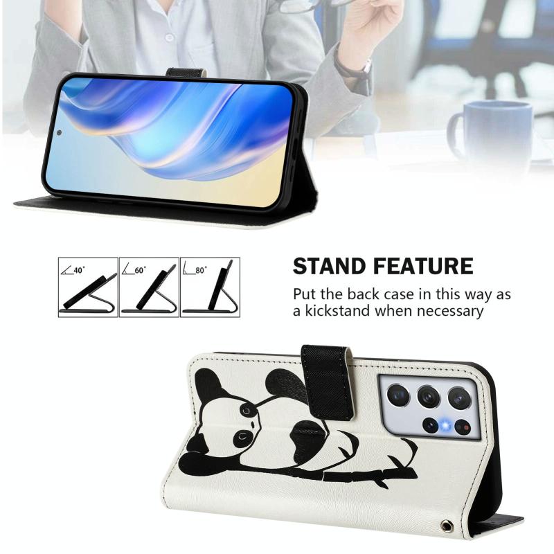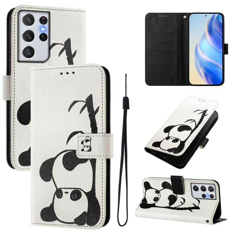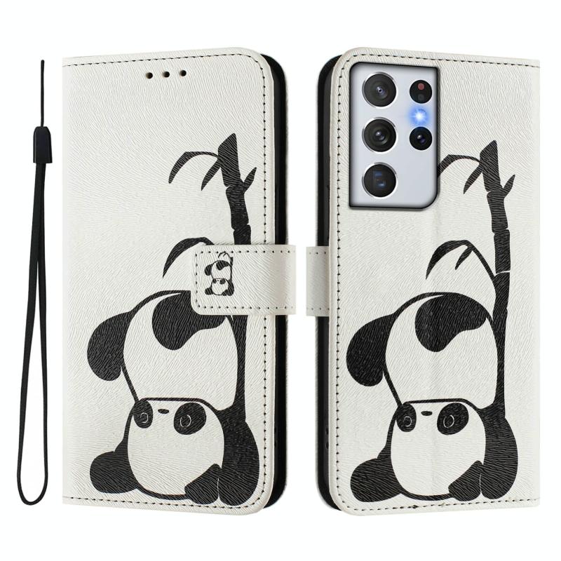For Samsung Galaxy S21 Ultra 5G Art Colored Drawing Pattern Leather Phone Case(Panda)