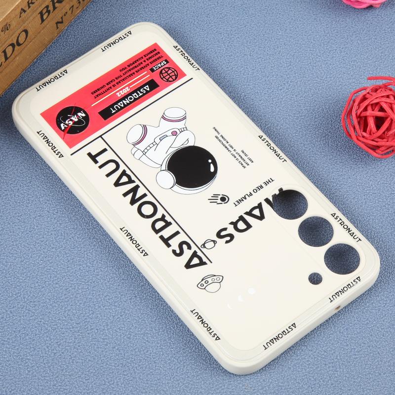 For Samsung Galaxy S21 Ultra 5G Astronaut Pattern Silicone Straight Edge Phone Case(Mars Astronaut-White)