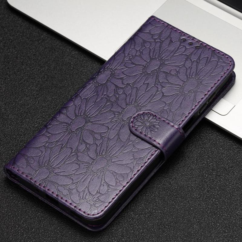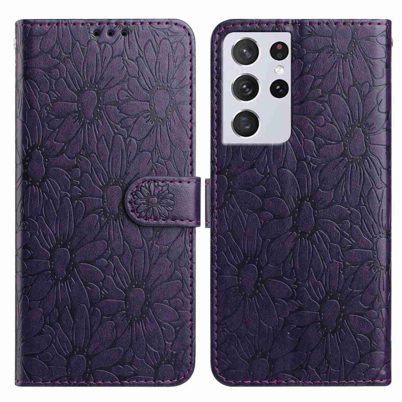For Samsung Galaxy S21 Ultra 5G Daisy Embossed Leather Phone Case(Dark Purple)