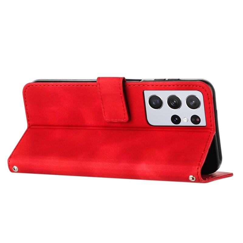 For Samsung Galaxy S21 Ultra 5G Dream Triangle Leather Phone Case with Long Lanyard(Red)