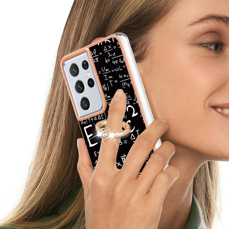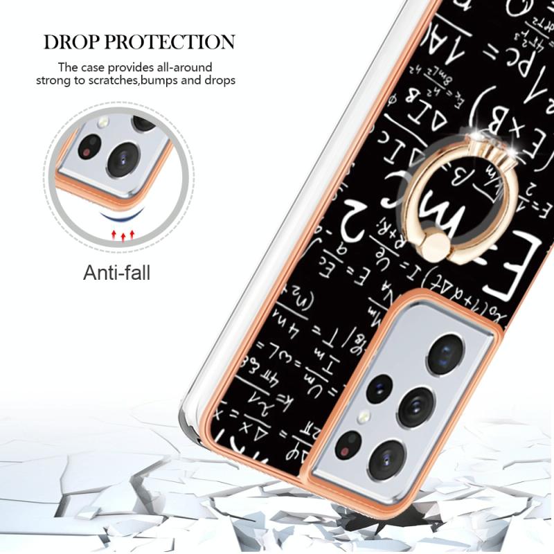 For Samsung Galaxy S21 Ultra 5G Electroplating Dual-side IMD Phone Case with Ring Holder(Equation)