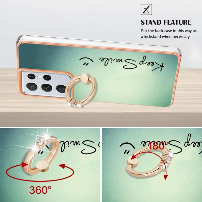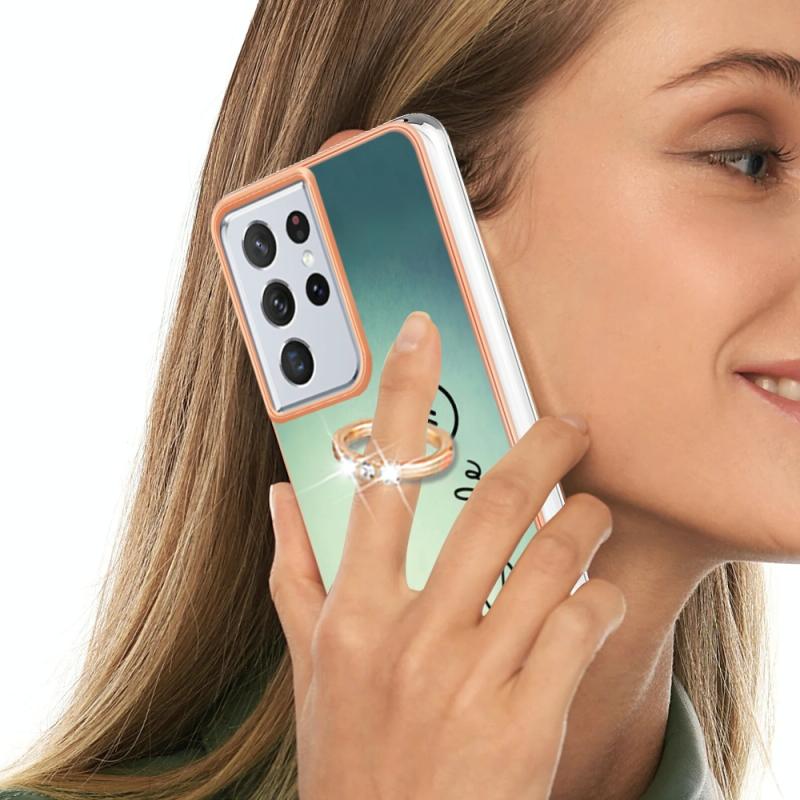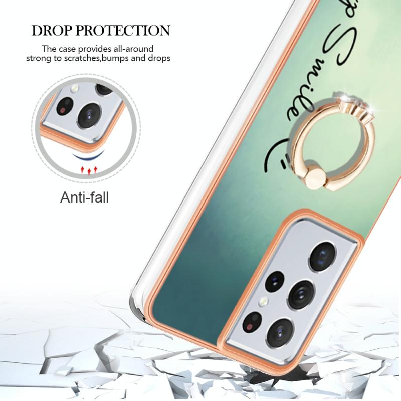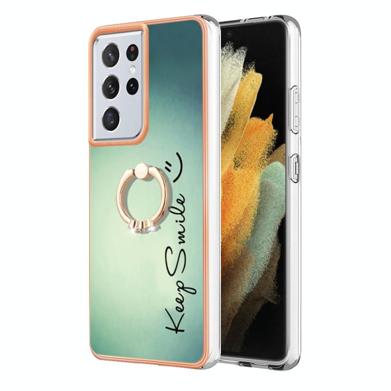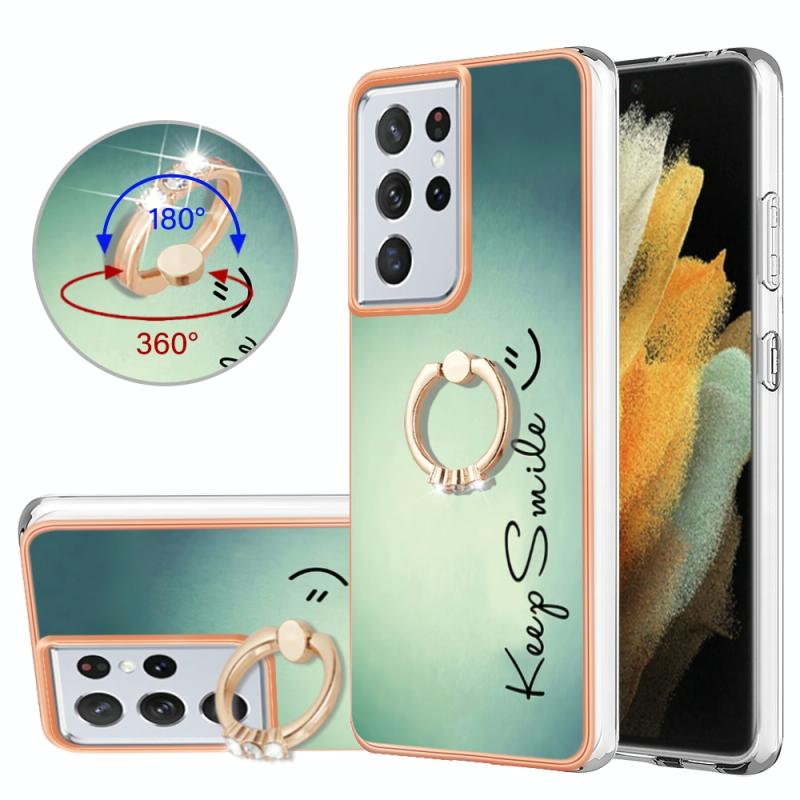 For Samsung Galaxy S21 Ultra 5G Electroplating Dual-side IMD Phone Case with Ring Holder(Smile)