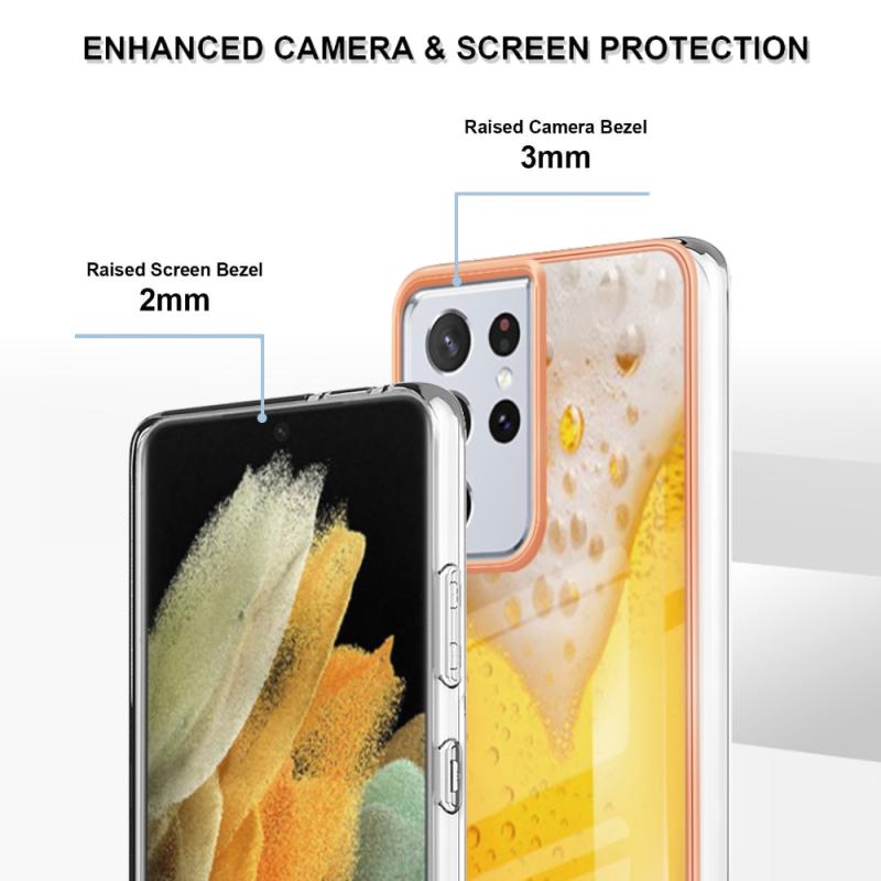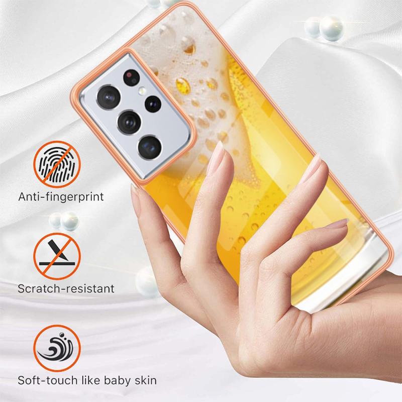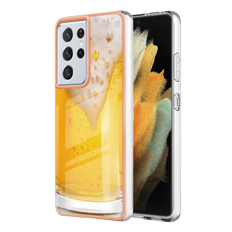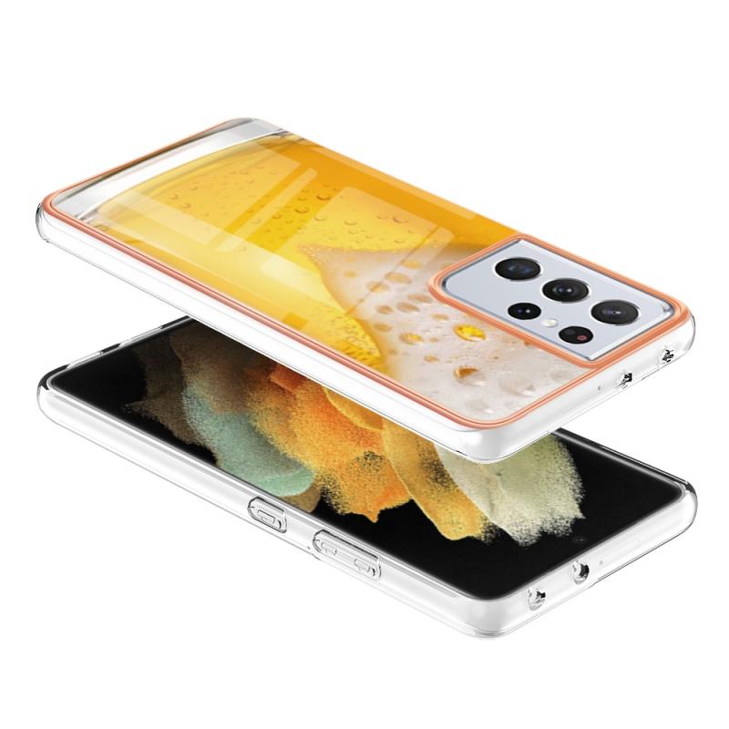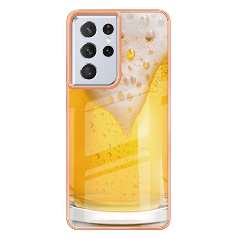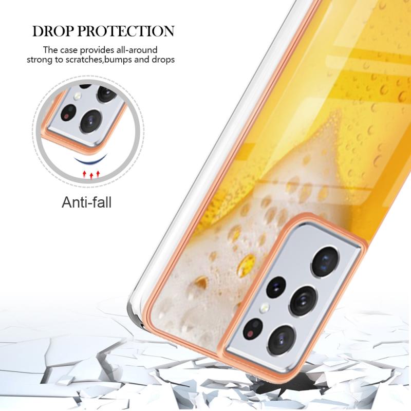 For Samsung Galaxy S21 Ultra 5G Electroplating Marble Dual-side IMD Phone Case(Draft Beer)