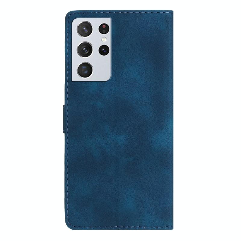 For Samsung Galaxy S21 Ultra 5G Flower Butterfly Embossing Pattern Leather Phone Case(Blue)