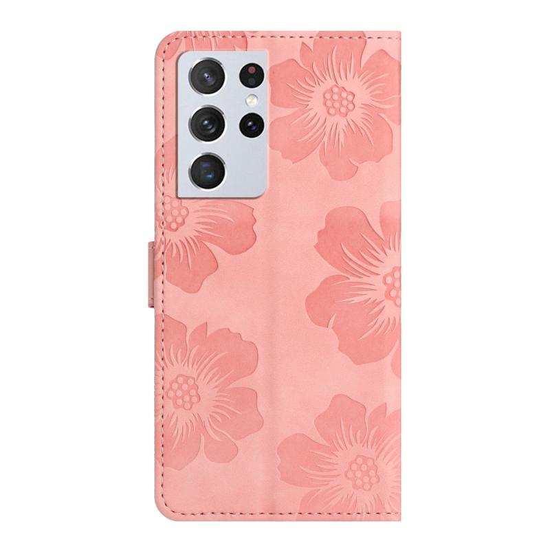 For Samsung Galaxy S21 Ultra 5G Flower Embossing Pattern Leather Phone Case(Pink)
