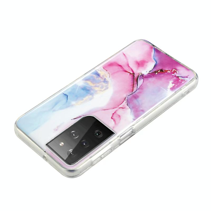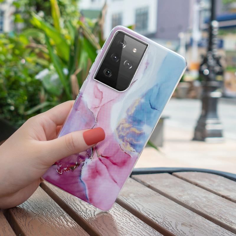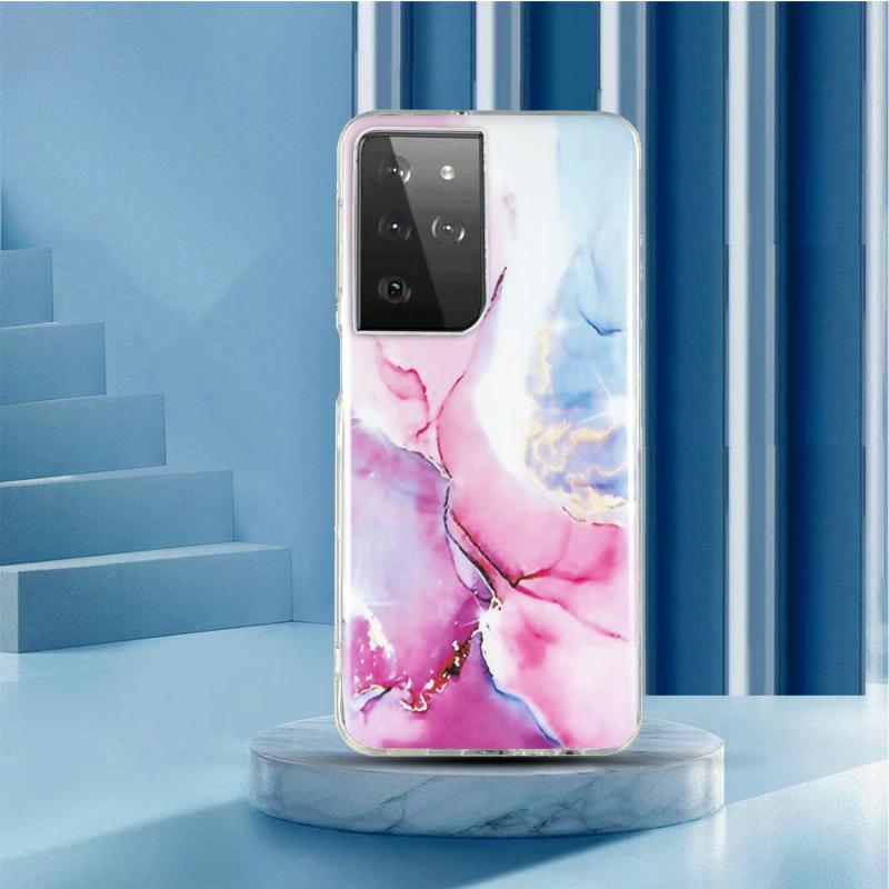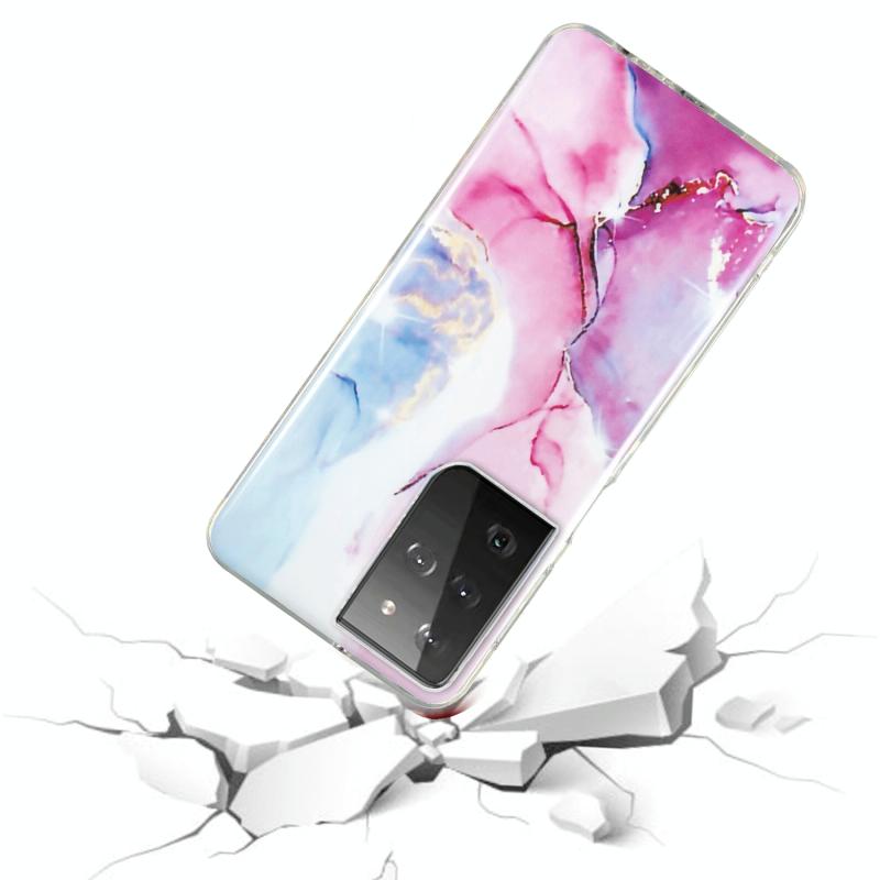 For Samsung Galaxy S21 Ultra 5G IMD Marble Pattern TPU Phone Case(Pink Blue)