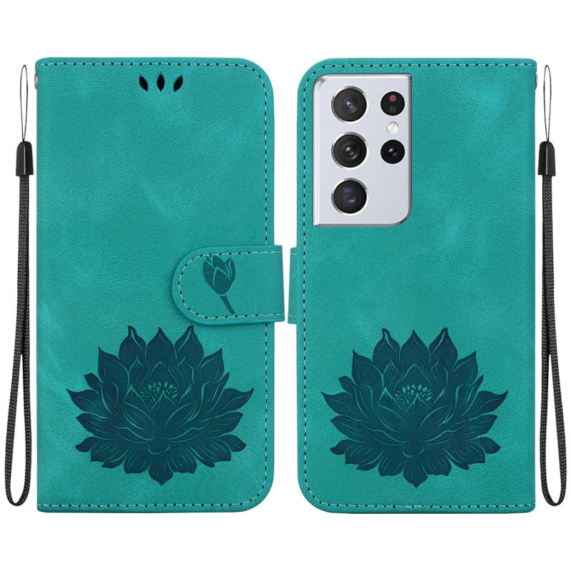 For Samsung Galaxy S21 Ultra 5G Lotus Embossed Leather Phone Case(Green)
