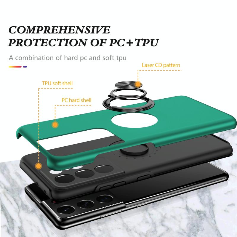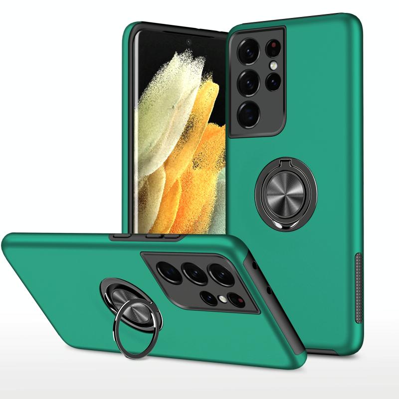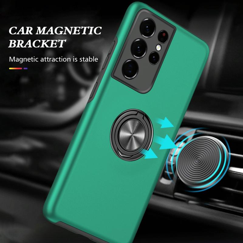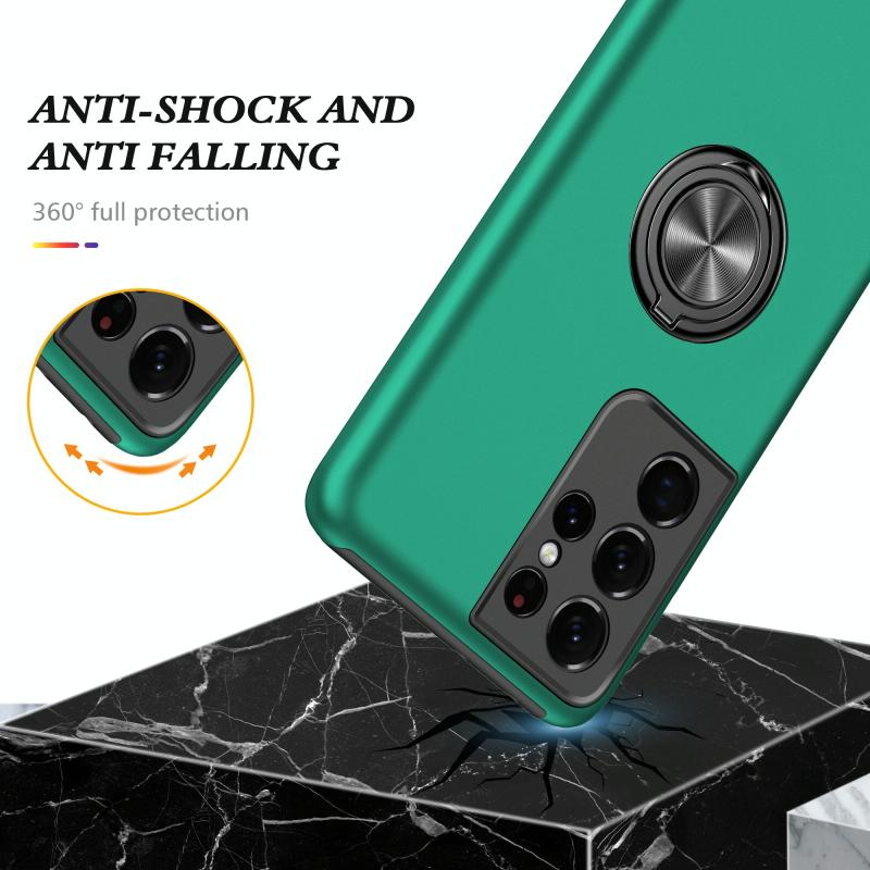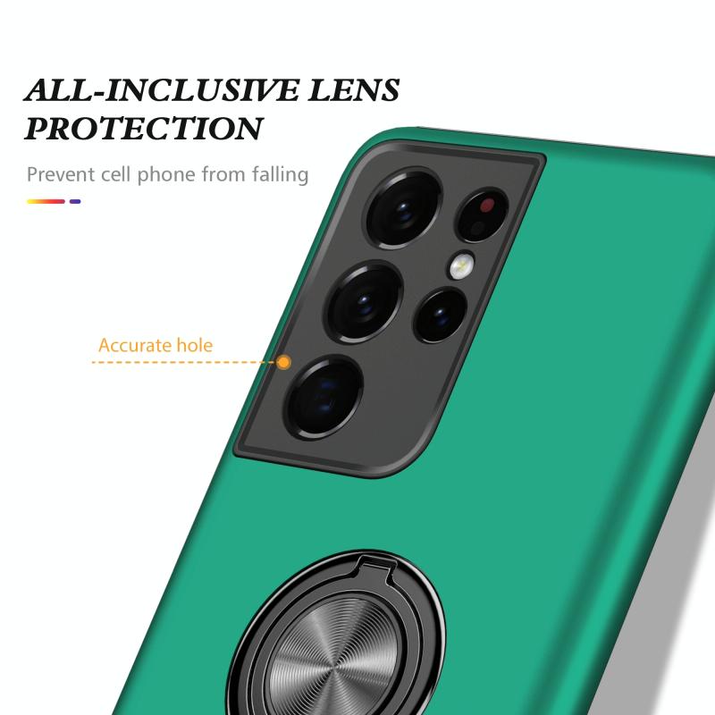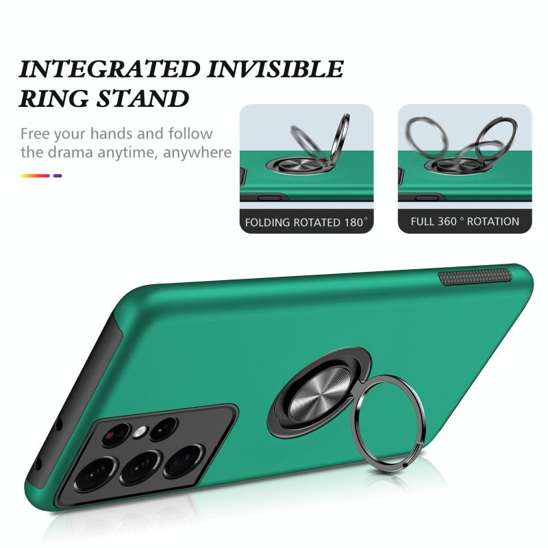For Samsung Galaxy S21 Ultra 5G PC + TPU Shockproof Magnetic Protective Case with Invisible Ring Holder(Dark Green)