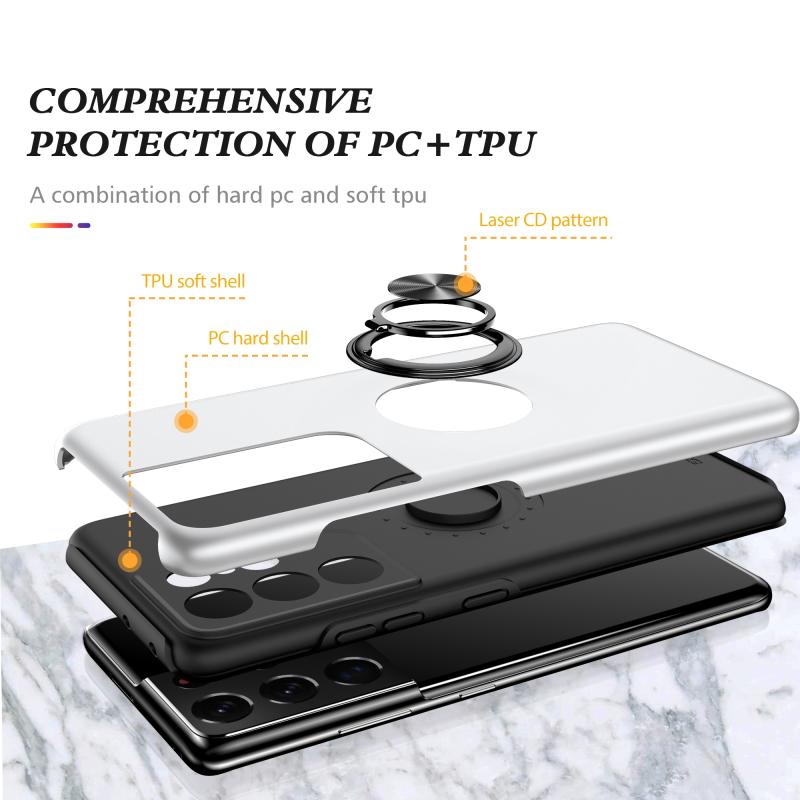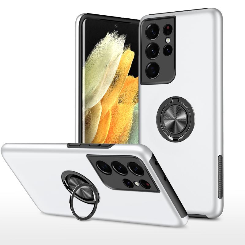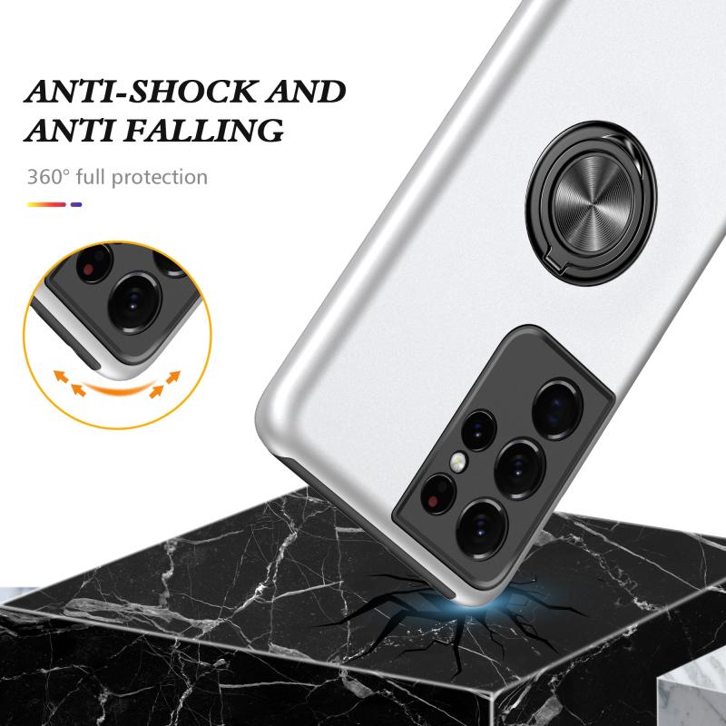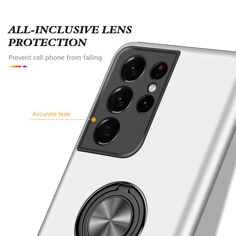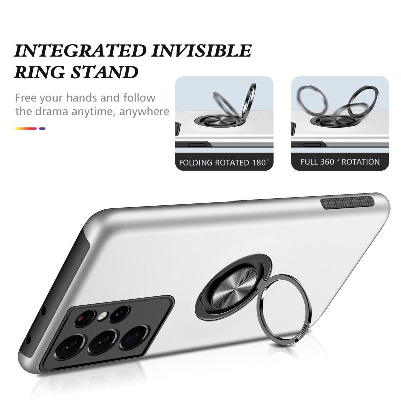 For Samsung Galaxy S21 Ultra 5G PC + TPU Shockproof Magnetic Protective Case with Invisible Ring Holder(Silver)