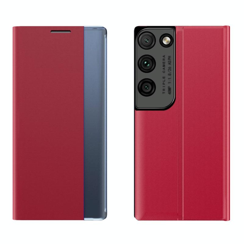 For Samsung Galaxy S21 Ultra 5G Plain Texture Cloth Attraction Flip Holder Leather Phone Case(Red)