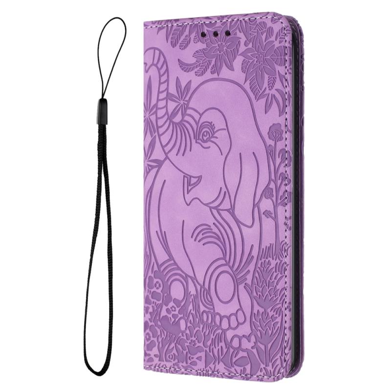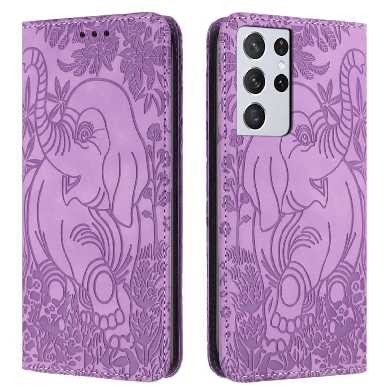 For Samsung Galaxy S21 Ultra 5G Retro Elephant Embossed Leather Phone Case(Purple)