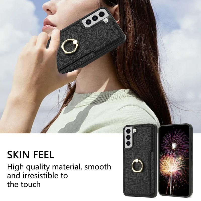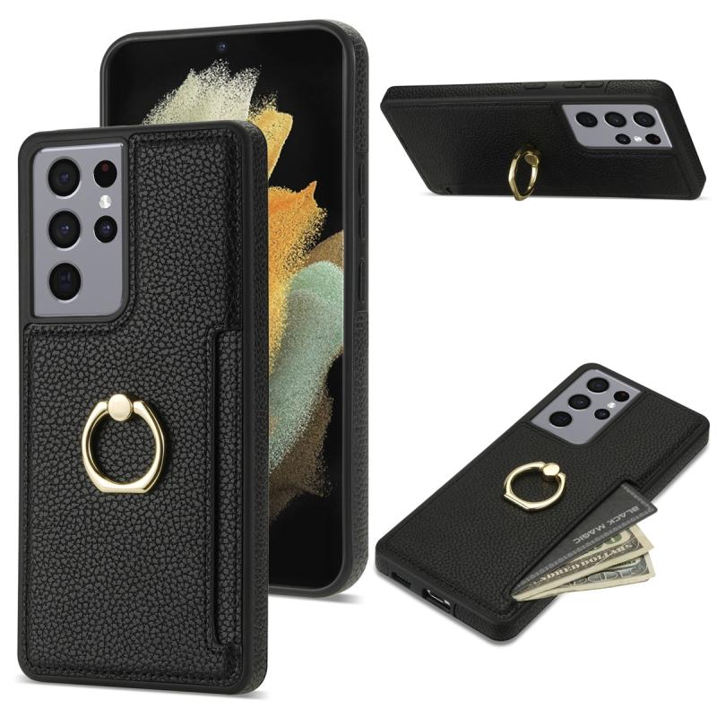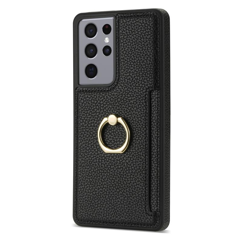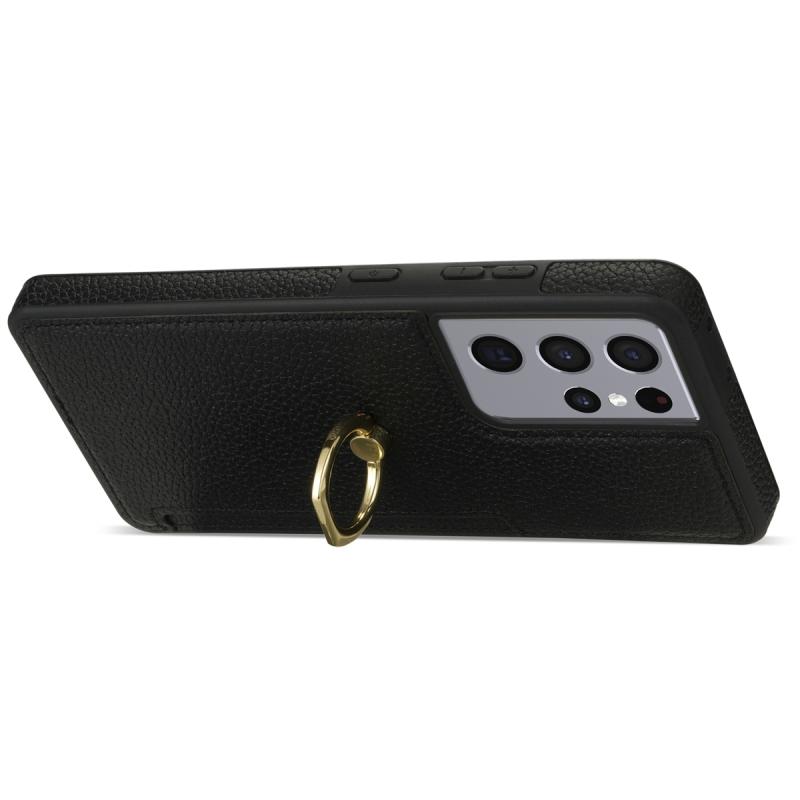For Samsung Galaxy S21 Ultra 5G Ring Card Litchi Leather Back Phone Case(Black)