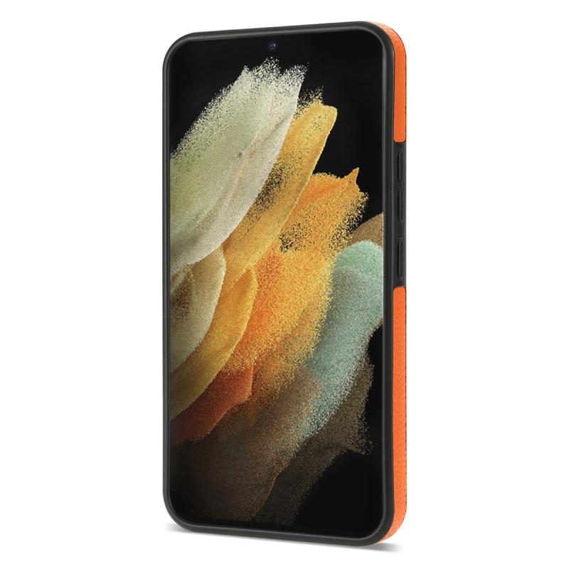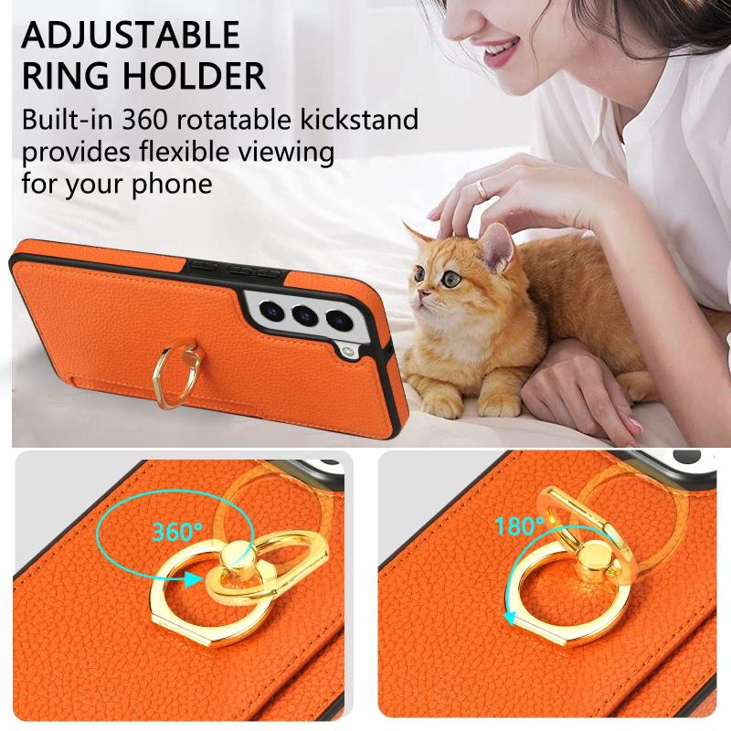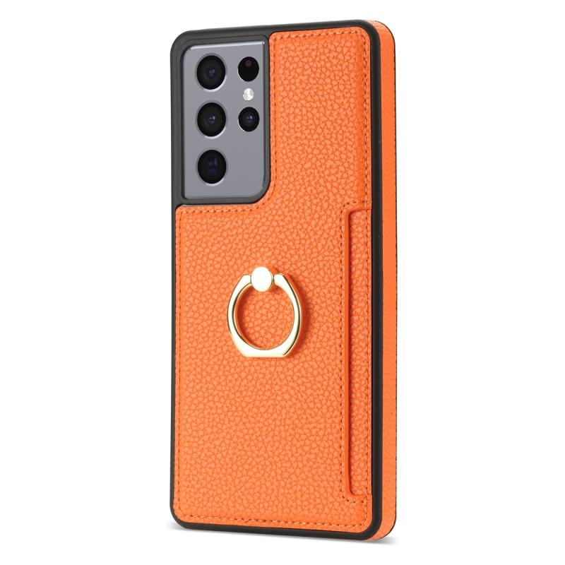For Samsung Galaxy S21 Ultra 5G Ring Card Litchi Leather Back Phone Case(Orange)
