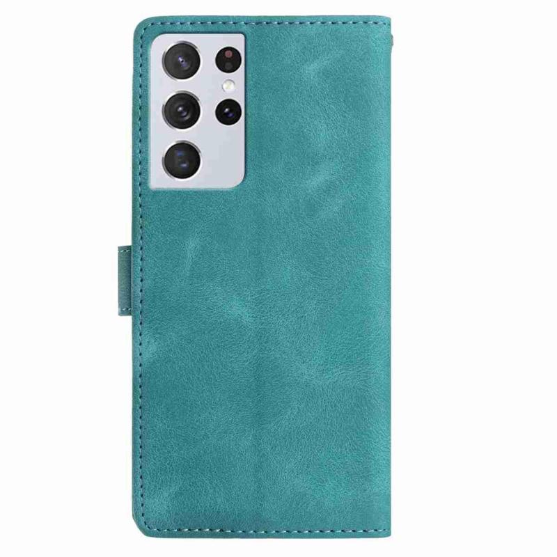 For Samsung Galaxy S21 Ultra 5G Rose Flower Embossing Pattern Leather Phone Case(Green)