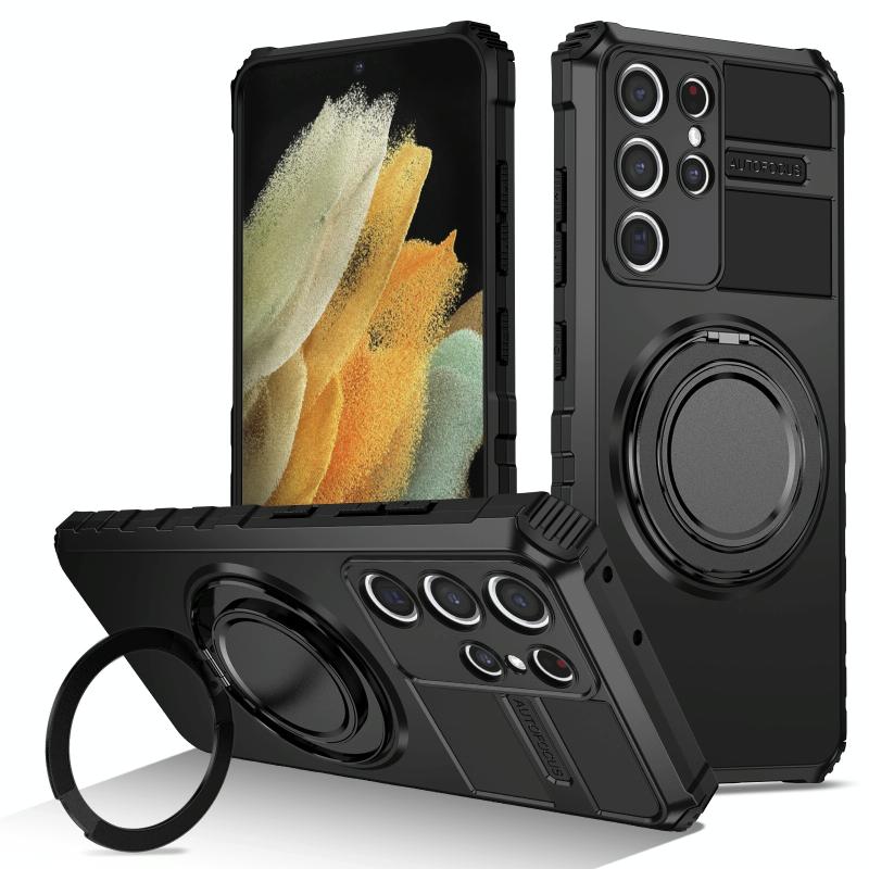 For Samsung Galaxy S21 Ultra 5G Rotating Magnetic Holder Phone Case(Black)