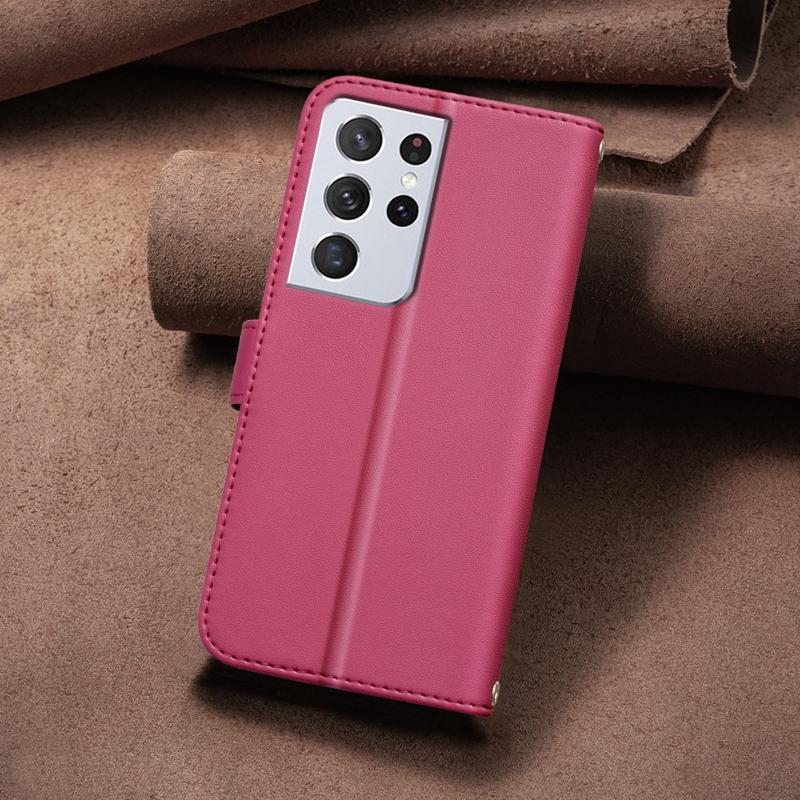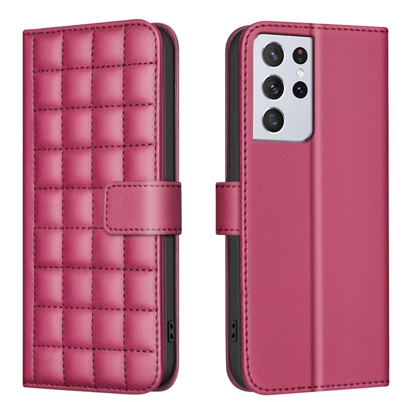 For Samsung Galaxy S21 Ultra 5G Square Texture Leather Phone Case(Red)