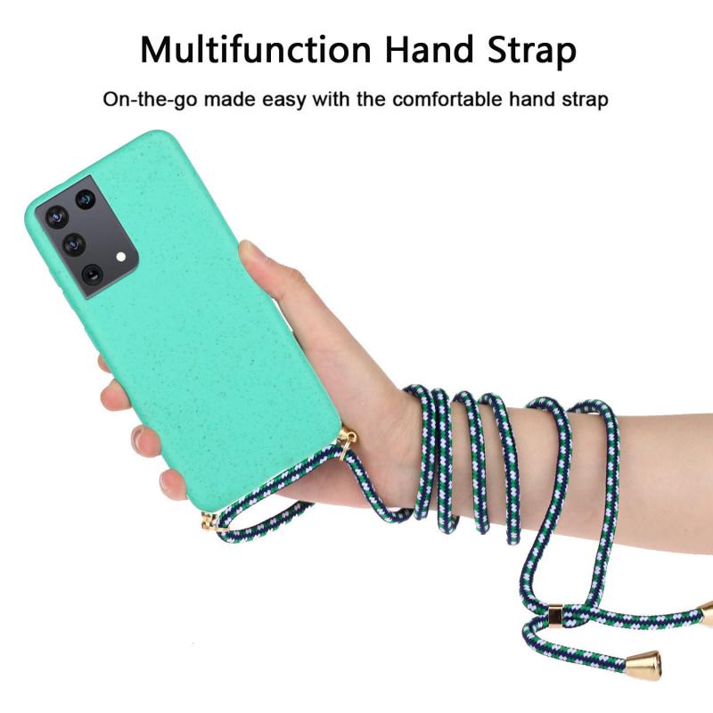 For Samsung Galaxy S21 Ultra 5G Wheat Straw Material + TPU Protective Case with Lanyard(Green)