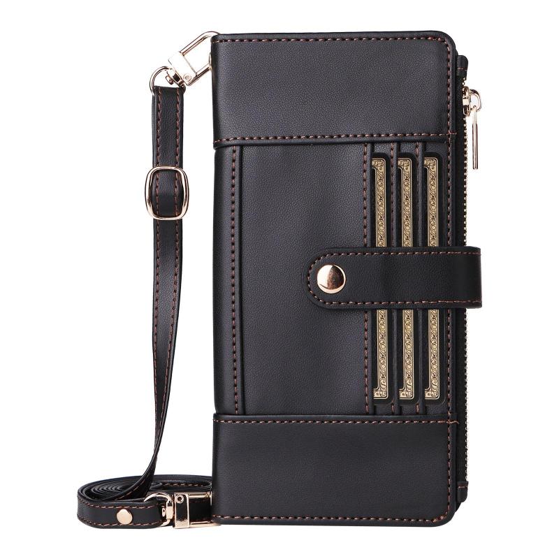 For Samsung Galaxy S22+ 5G Crossbody Strap RFID Blocking Zipper Wallet Leather Phone Case(Black)