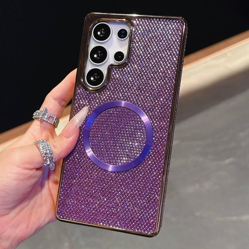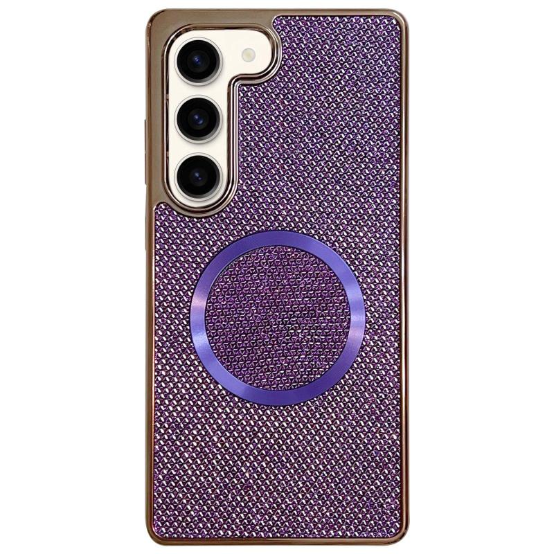 For Samsung Galaxy S22 5G Electroplating PC Glitter Grain MagSafe Phone Case(Purple)