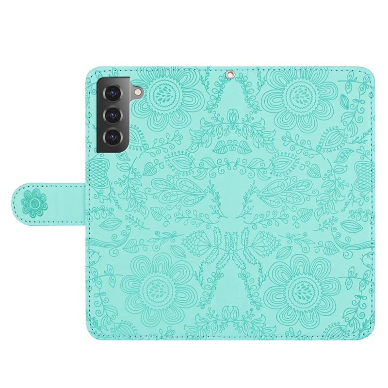 For Samsung Galaxy S22+ 5G Floral Embossed Pattern Leather Phone Case(Light Green)