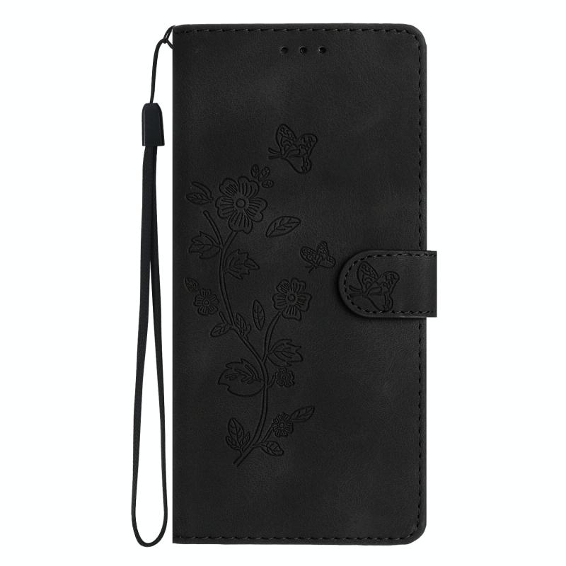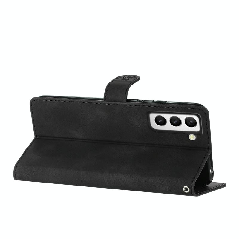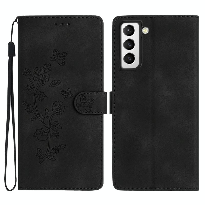 For Samsung Galaxy S22+ 5G Flower Butterfly Embossing Pattern Leather Phone Case(Black)