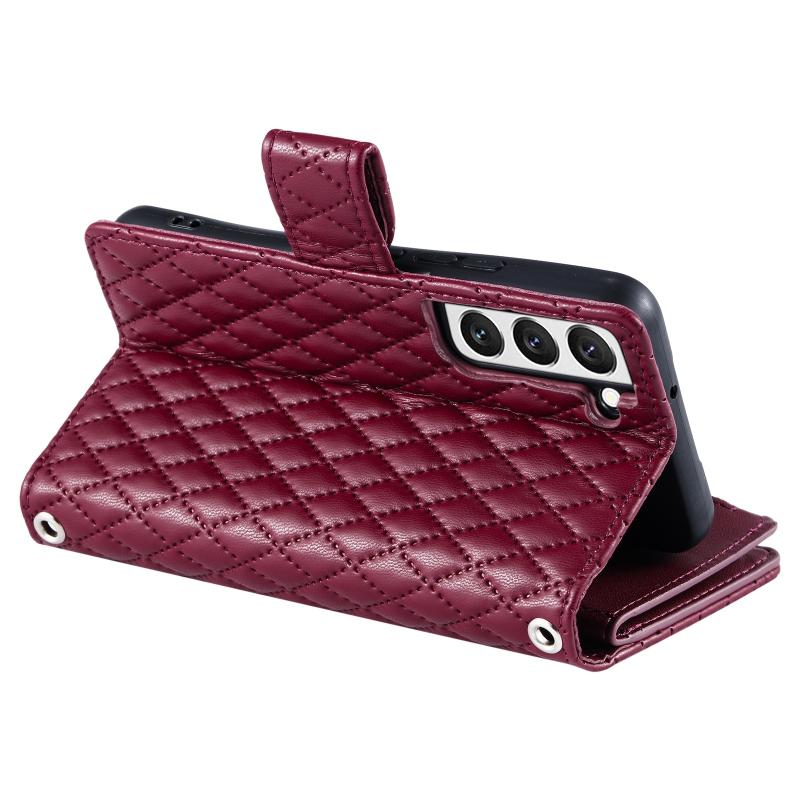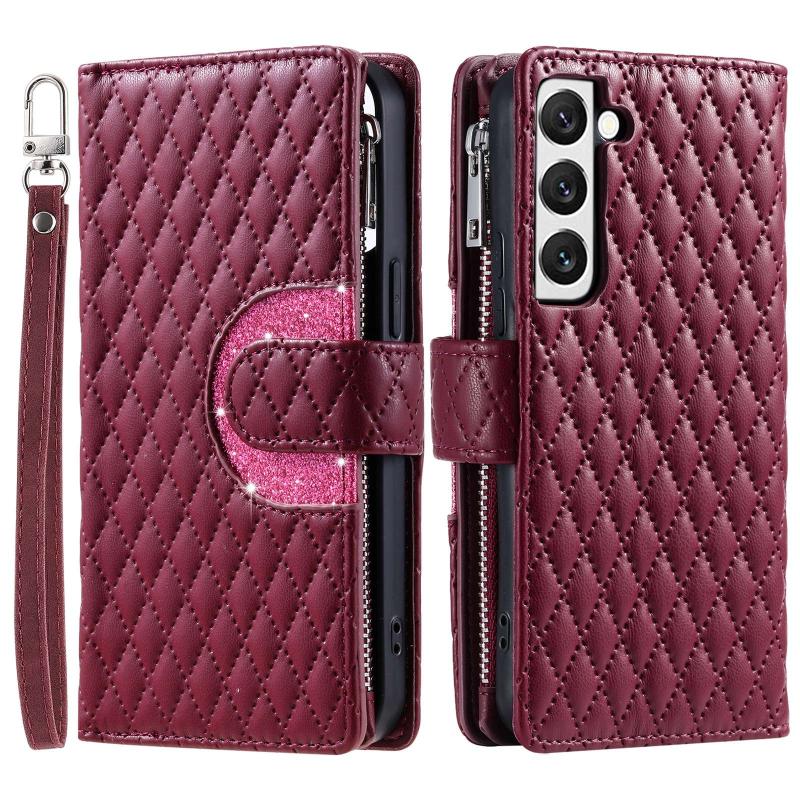 For Samsung Galaxy S22+ 5G Glitter Lattice Zipper Wallet Leather Phone Case(Wine Red)