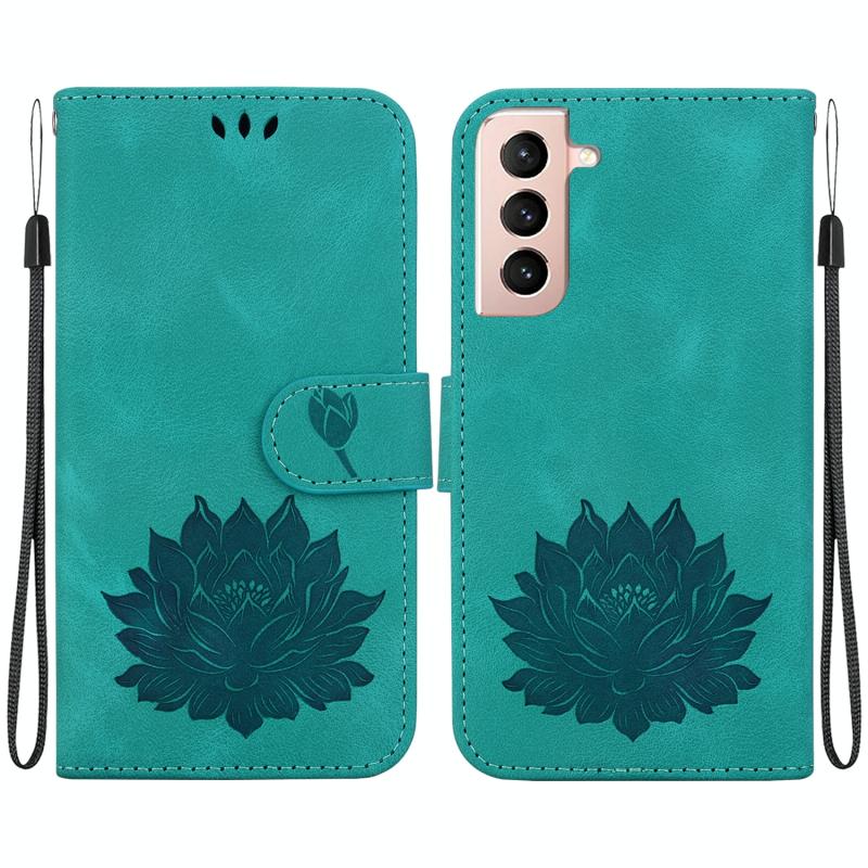 For Samsung Galaxy S22 5G Lotus Embossed Leather Phone Case(Green)