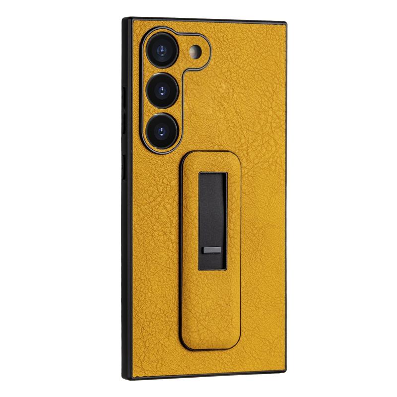 For Samsung Galaxy S22 5G PU Leather Push-pull Bracket Shockproof Phone Case(Yellow)