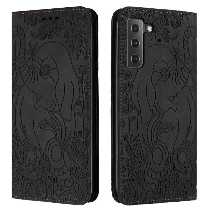 For Samsung Galaxy S22 5G Retro Elephant Embossed Leather Phone Case(Black)
